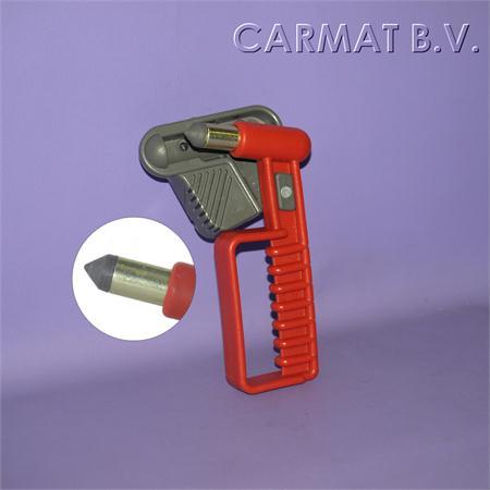 Emergency hammer big. Bracket included. For safety in interior space for cabins and vehicle. This model has a seat-belt cutting blade, anti-theft feature and anti-vandalism feature. Bracket included.